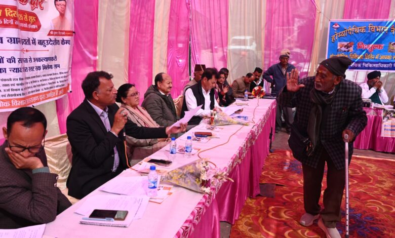 ज्योलीकोट । प्रदेश सरकार की जनकल्याणकारी योजनाओं को आम जन तक पंहुचाने के उद्देश्य से जन-जन की सरकार जन-जन के द्वार कार्यक्रम के तहत बुधवार को ज्योलीकोट रामलीला मैदान में बहुउददेशीय शिविर सम्पन्न हुआ। नवागन्तुक मुख्य विकास अधिकारी अरविन्द कुमार पाण्डे ने शिविर में लोगों की समस्याओं को सुना और मौके पर निस्तारण किया।