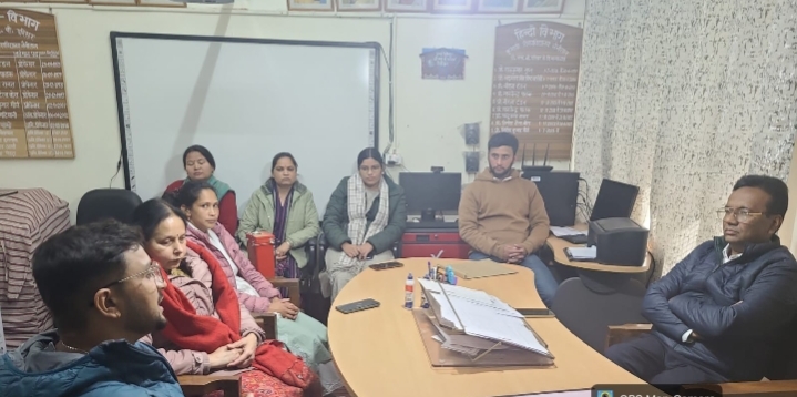नैनीताल l हिंदी एवं अन्य भारतीय भाषा विभाग, डी. एस. बी. परिसर, नैनीताल में शोधार्थी हिमांशु विश्वकर्मा की उत्तराखंड भाषा संस्थान के ‘युवा कलमकार सम्मान’ 2026 से पुरस्कृत कहानी ‘बावर की वनकन्या’ पर साहित्यिक परिचर्चा का आयोजन किया गया। इस अवसर पर विभाग के समस्त प्राध्यापकों एवं शोधार्थियों ने हर्ष व्यक्त करते हुए उन्हें हार्दिक बधाई दी। परिचर्चा के दौरान हिन्दी के विभागाध्यक्ष प्रो. शिरीष कुमार मौर्य ने कहानी के रचनात्मक संदर्भों को स्पष्ट करते हुए जौनसार-बावर क्षेत्र की विशिष्ट सामाजिक-सांस्कृतिक पृष्ठभूमि पर प्रकाश डाला। उन्होंने कहा कि इस क्षेत्र की कई कुप्रथाएं सामाजिक यथार्थ का हिस्सा रही हैं, हिमांशु विश्वकर्मा की यह कहानी इसी संवेदनशील और जटिल यथार्थ को अत्यंत मुखरता और ईमानदारी के साथ सामने लाती है। प्रो. मौर्य ने उपस्थित शोधार्थियों एवं प्राध्यापकों को रचनात्मक लेखन तथा समीक्षा, शोध-लेखन व आलोचनात्मक दृष्टि विकसित करने के लिए प्रेरित किया। उन्होंने हिमांशु विश्वकर्मा से कहा कि किसी भी रचना का महत्व केवल पुरस्कार से नहीं, बल्कि एक सक्षम संपादकीय दृष्टि से गुजरकर प्रतिष्ठित मंच पर प्रकाशित होने से अधिक बढ़ता है। इस अवसर पर मेधा नैलवाल ने हिमांशु विश्वकर्मा के रचनात्मक संघर्ष को रेखांकित करते हुए कहा कि वे बहुमुखी प्रतिभा के धनी हैं और कविता, कहानी, अनुवाद तथा आलोचनात्मक शोध जैसे विविध क्षेत्रों में समान रूप से सक्रिय हैं। विभाग के सभी सदस्यों ने हिमांशु विश्वकर्मा उज्ज्वल भविष्य की कामना की।