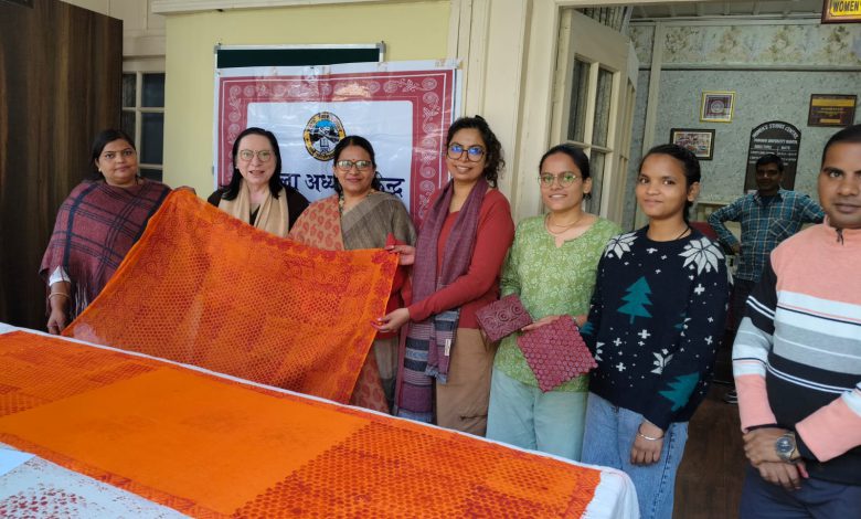 नैनीताल l कुमाऊं विश्वविद्यालय नैनीताल के माता जिया रानी, महिला अध्ययन केंद्र में 6 माह का ऐपण सर्टिफिकेट कोर्स चल रहा है l जिसमें रंगवाली पिछोड़ा बनाना भी शामिल है, इसके अंतर्गत तीन दिवसीय कार्यशाला दिनांक 13 अक्टूबर 2025 से 15 अक्टूबर 2025 तक किया गया l कार्यक्रम के प्रथम दिवस में निफ्ट डिजाइनर शगुन तिवारी और हस्तशिल्प की मास्टर ट्रेनर रुचि नैनवाल ने प्रतिभागियों को उत्तराखंड की संस्कृति और रंगवाली का महत्व बताते हुए परंपरागत ड्राइंग ड्राइंग की तकनीकिया समझाइ और बताया कि ब्लॉक से प्रिंटिंग कैसे की जाती है l