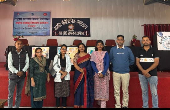 नैनीताल l ‘नशा मुक्ति एवं मादक पदार्थों के दुरुपयोग के विरुद्ध जागरूकता विषय पर एक कार्यशाला का आयोजन किया गया। यह कार्यक्रम चिकित्सालय के परामर्शदाताओं (Counsellors) के सहयोग से आयोजित किया गया। कार्यक्रम की अध्यक्षता प्रधानाचार्य श्री ए. के. एस. गौड़ द्वारा की गई तथा कार्यक्रम का संचालन श्रीमती भावना पंत, विभागाध्यक्ष, बेसिक साइंस द्वारा किया गया। चिकित्सालय की ओर से Psychiatrist Dr- Garima Kandpal] NTCP Counsellor Meghana Parwal तथा Social Worker Harendra Singh Kharayat ने नशे के दुष्प्रभावों, कारणों और उससे बचाव के उपायों पर विस्तारपूर्वक चर्चा की। उन्होंने बताया कि नशा व्यक्ति के शारीरिक एवं मानसिक स्वास्थ्य दोनों पर बुरा प्रभाव डालता है और समाज के लिए एक गंभीर चुनौती बन चुका है। इस अवसर पर प्रधानाचार्य श्री ए. के. एस. गौड़ ने अपने अध्यक्षीय उद्बोधन में कहा कि युवाओं को नशे से दूर रहकर अपने जीवन को सार्थक दिशा में अग्रसर करना चाहिए। उन्होंने विद्यार्थियों से नशामुक्त समाज निर्माण में सक्रिय भूमिका निभाने का आह्वान किया। कार्यक्रम में संस्था परिवार की ओर से श्रीमती लक्ष्मी गोस्वामी, श्री मुकेश कुमार, व्याख्याता, श्री कमल पंत कर्म० अनुदेशक व बड़ी संख्या में छात्र-छात्राओं ने भाग लिया और विशेषज्ञों से संवाद किया। अंत में सभी अतिथियों का आभार व्यक्त किया गया तथा नशामुक्त जीवन का संकल्प लिया गया।