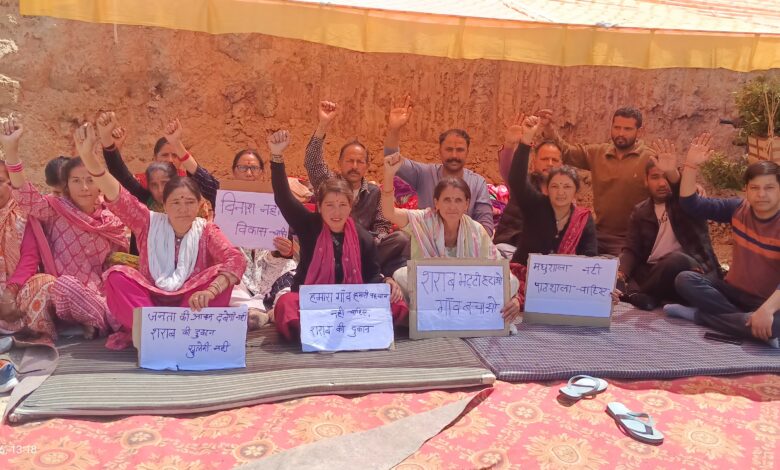 नलनी- घटगढ़ में शराब की दुकानों के विरोध में आंदोलन तीसरे दिन भी जारी