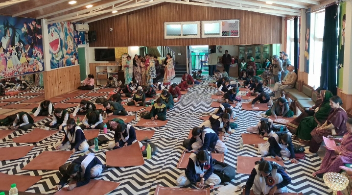 प्रतियोगिता में बच्चो द्वारा अपनी पारंपरिक कला को बहुत ही नियमों का पालन करते हुए बनाया गया।