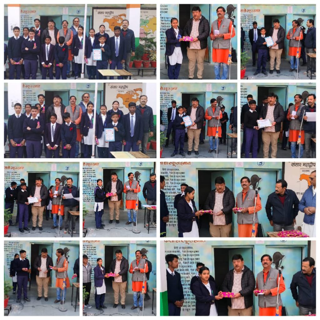 इस अवसर पर प्रधानाचार्य सुरेंद्र सिंह बिष्ट ने सभी विद्यार्थियों को प्रतियोगिता में भाग लेने एवं कुछ सीखने की प्रेरणा लेने हेतु आवाहन किया तथा बधाई दी, प्रतियोगिता के पश्चात विजेताओं को प्रधानाचार्य सुरेंद्र सिंह बिष्ट एवं संस्था के संस्थापक अध्यक्ष डॉ. स्वामी एस चंद्रा द्वारा पुरस्कृत किया गया जिसमें गौरा देवी सदन से पवन एवं परी, दिव्यांश एवं साधना, श्रीदेवी श्री देव सुमन सदन से रोहन एवं खुशी, धर्मेश एवं संजू, रानी लक्ष्मीबाई सदन से अमिक्षा एवं रोहित, आरुषि एवं अखिलेश तथा अशोक सदन से मानसी एवं आयुष, रिंकी एवं दिलखुश ने प्रतिभाग किया,