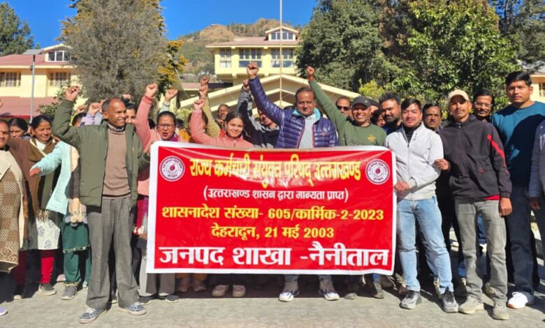 भीमताल l राज्य कर्मचारी संयुक्त परिषद जनपद नैनीताल के तत्वावधान में भीमताल में आठवें दिन गेट मीटिंग कर सरकार से कर्मचारियों की 18 सूत्रीय मांगों को यथा शीघ्र मंजूर के जाने का आव्हान किया गया। गेट मीटिंग की अध्यक्षता करते हुए परिषद के जिलाध्यक्ष असलम अली ने सभा को संबोधित करते हुए श्री कहा की कर्मचारियों की पुरानी एसीपी, गोल्डन कार्ड की विसंगति तथा वेतन विसंगति से जुड़े प्रकरणों पर राज्य सरकार द्वारा अभी तक कोई भी ठोस निर्णय नहीं ले जाने से प्रदेश भर के कर्मचारियों मे व्यापक आक्रोश फैल गया है,जिस कारण प्रांतीय नेतृत्व के आव्हान पर प्रथम चरण के अंतर्गत 15 जनवरी से प्रदेश भर में कर्मचारी आंदोलन कर रहे। लेकिन अभी तक सरकार द्वारा सकारात्मक पहल नहीं की जा रही है जिससे कर्मचारियों में आक्रोश बढ़ता जा रहा है। जनपद नैनीताल के विभिन्न संगठनों के कर्मचारीआंदोलन में व्यापक भागीदारी निभाने के लिए पूर्ण रूप से तैयार हैं। बैठक में परिषद के वरिष्ठ सदस्य राजेंद्र प्रसाद टम्टा ने कहा कि शासन स्तर पर लंबित कर्मचारियों की जायज मांगों को एक सुनियोजित तरीके से निस्तारण के बजाय लटकाया जा रहा है। जिससे कर्मचारियों में लगातार रोष बढ़ रहा है। बैठक का संचालन सतीश कुमार द्वारा किया गया। बैठक में परिषद के भोपाल सिंह बिष्ट, रश्मि , प्रकाश चंद ,सोनिया अरोरा, बृजमोहन सिंह, ललित कुमार, हरिश चन्द्र, मनोज कुमार, रीना , ज्योति पांडे, कुसुम , दीपा बिष्ट, विजय भट्ट, संदीप कुमार, शकुंतला, लक्ष्मी सिंह, जितेंद्र भास्कर, सुनीत शाह , दीपक खुल्बे,हीरा सिंह रोतेला ,डा कनिका साह,कमला रैखोला,शशि , रमेश चन्द्र भट्ट , सुनील जोशी, सुरेश जोशी ,भूपेंद्र लाल, दलीप सिंह पीसी ध्यानी मुकेश कुमार अमरनाथ गोस्वामी,बिशन सिंह, शमशेर सिंह सहित कई कर्मचारी प्रतिनिधि उपस्थित थे।