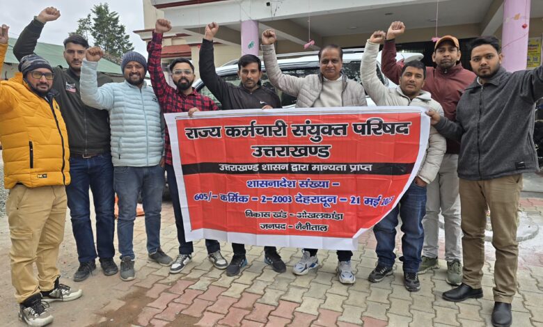 नैनीताल l राज्य कर्मचारी संयुक्त परिषद जनपद नैनीताल के तत्वावधान में जनपद की सबसे दूरस्थ विकासखंड ओखलकाडा में आंदोलन के प्रथम चरण के अनुसार गेट मीटिंग कर सरकार से कर्मचारियों की 18 सूत्रीय मांगों को यथा शीघ्र मंजूर के जाने का आव्हान किया गया। तथा समस्त कर्मचारियों से आंदोलन में बड चढ़ कर हिस्सा लेने की अपील की गई।