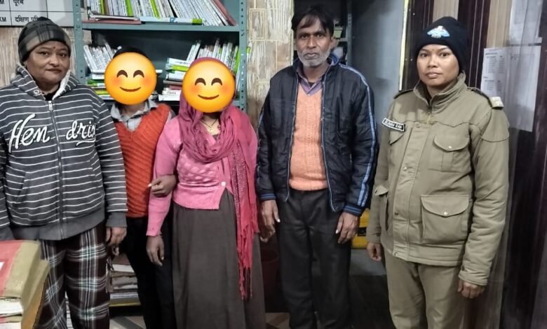नैनीताल l 28 दिसंबर को थाना चोरगलिया पुलिस को एक मानसिक रूप से अस्वस्थ्य प्रतीत हो रही महिला के चोरगलिया बाजार में घूमने की सूचना प्राप्त हुई। सूचना पर त्वरित कार्यवाही करते हुए प्रभारी निरीक्षक चोरगलिया श्री हरपाल सिंह द्वारा पुलिस टीम मौके पर भेजा गया। पुलिस टीम द्वारा महिला से नाम व घर का पता पूछने पर अपना नाम व पता नही बताया गया। मामले की संवेदनशीलता के दृष्टिगत उक्त महिला को थाने लाया गया। कुछ समय उपरान्त पुनः पूछे जाने पर अपना नाम मुन्नी देवी निवासी शाहजहाँपुर उ0प्र0 तथा अपने पति का नाम भानू प्रकाश तथा मोबाइल नंबर भी बताया गया।