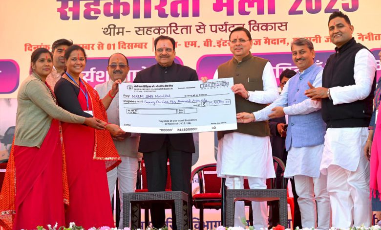 सहकारिता मेले में पहुँचे CM धामी—महिला स्वयं सहायता समूहों के स्टॉल का निरीक्षण, हल्द्वानी सहकारिता मेले में CM धामी का बड़ा बयान—“राज्य की डेमोग्राफी बदलने की साजिश पर सख़्त कार्रवाई होगी”, CM धामी ने महिला समूहों को 17.72 करोड़ रुपये के चेक वितरित कर दी सशक्तिकरण को नई गति, सहकारिता मेला बनेगा स्थानीय विकास का आधार—सीएम धामी