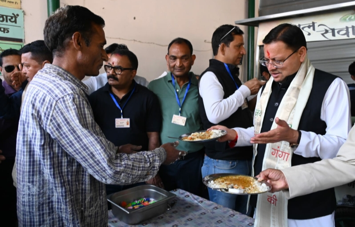 सीएम धामी ने की थालसेवा, थाल सेवक के रूप में देते है हर माह सेवा
