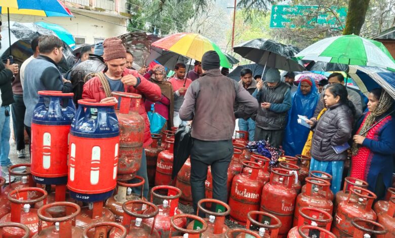 नैनीताल के बीडी पांडे के समीप गोलघर में शुक्रवार को गैस की गाड़ी आने से पहले ही गैस के लिए लोगों ने कतार लगाना शुरू कर दिया l 150 से अधिक लोग तेज बारिश में गैस के लिए छाता लेकर कतार में लगे रहे l इंडेन गैस एजेंसी की मैनेजर अंकिता पांडे ने बताया कि शहर के वार्डों में रोटेशन वाइस गैस भेजी जा रही है l लेकिन गोल घर के समीप शहर के सभी क्षेत्रों के लोग सिलेंडर लेने आ रहे l जिसके चलते बीते गुरुवार को कतार में खड़े 50 उपभोक्ताओं की गैस बुक जमा के ली गई थी, जिन्हें शुक्रवार को गैस दी गई l इसके साथ ही 50 उपभोक्ताओं की गैस बुक जिनकी गैस बुक है, उनकी गैस बुक जमा की गई है l जिन्हें शनिवार को गैस वितरित की जाएगी l