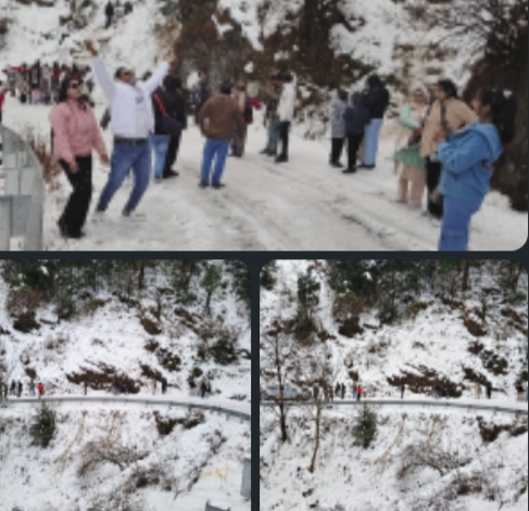 हिमालय दर्शन में उमड़ी पर्यटकों की भीड़ , बर्फबारी का लुफ्त