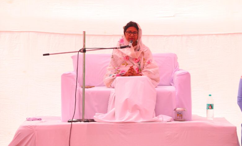 इस विशाल निरंकारी महिला संत समागम में मिशन कि प्रचारक बहन श्रीमती गीता आर्य जी ने सत्संग को संबोधित करते हुए अपने विचारों में कहा है कि संत निरंकारी विचारधारा के अनुसार मानव जीवन का मुख्य उद्देश्य आत्मज्ञान प्राप्त करना और परमात्मा की सच्ची पहचान करना है। संतों और सतगुरु की कृपा से ही मनुष्य को परमात्मा का वास्तविक ज्ञान प्राप्त होता है। जब मनुष्य आत्मज्ञान प्राप्त करता है, तब उसके जीवन में प्रेम, नम्रता, सेवा और मानवता के गुण विकसित होते हैं। इस ज्ञान के बिना व्यक्ति अहंकार, भेदभाव और अज्ञान में भटकता रहता है। निरंकारी मिशन यह भी संदेश देता है कि सभी मनुष्य एक ही परमात्मा की संतान हैं, इसलिए आपसी प्रेम, भाईचारा और समानता बनाए रखना आवश्यक है। संतों के उपदेश हमें यह सिखाते हैं कि सच्चा धर्म बाहरी दिखावे में नहीं बल्कि आंतरिक शुद्धता, अच्छे कर्म और मानव सेवा में है।