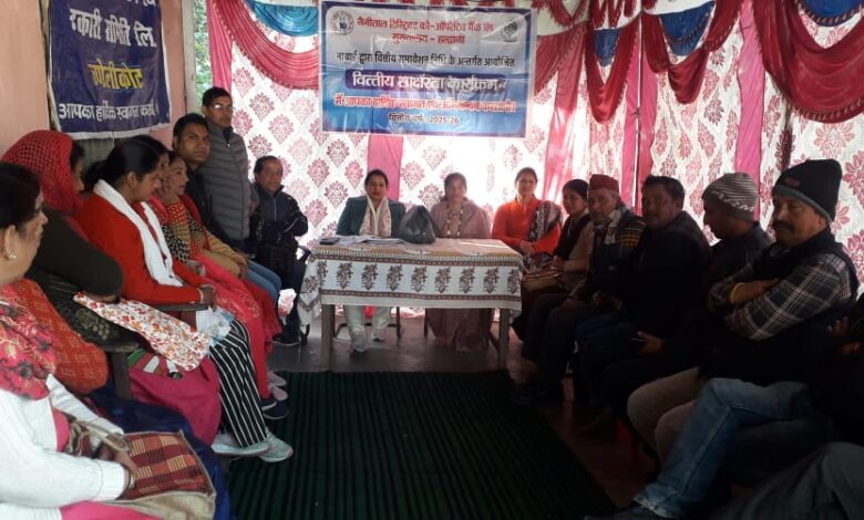 नैनीताल: बहुउद्देशीय किसान सेवा सहकारी समिति ज्योलीकोट में नैनीताल डिस्ट्रिक्ट कोऑपरेटिव बैंक लिमिटेड लि हल्द्वानी बैंक की शाखा भवाली द्वारा वित्तीय साक्षरता कार्यक्रम का आयोजन किया गया। बैंक प्रबंधक किरन आर्या ने बैंक द्वारा दी जा रही बैंक योजनाओं की विस्तृत जानकारी दी साथ ही सरकार द्वारा चलाई जारी विभिन्न प्रकार की बीमा योजनाओं के बारे में बताया उन्होंने कहा बीमा योजना के अंतर्गत किसान काश्तकार फसल बीमा के साथ प्रधानमंत्री बीमा योजना के अलावा अन्य प्रकार का बीमा करा सकते है जो भविष्य को ध्यान में रखते हुए एक लाभदायक योजना है बैंक प्रबंधक किरन आर्या ने समिति के सदस्यों से अनुरोध किया योजनाओं का अधिक से अधिक लोग लाभ उठाएं। एम पैक्स ज्योलीकोट के सचिव हयात सिंह मेहता ने समिति की योजनाओं की जानकारी दी साथ ही क्षेत्र में अधिक से अधिक लोगों को समिति की सदस्यता दिलाये जाने का अनुरोध किया, उक्त कार्यक्रम में समिति अध्यक्ष आशा जीना उपाध्यक्ष इंद्र नेगी संचालक जुगल गोस्वामी, कमल किशोर अधिकारी, दीपक कुमार, भीम सिंह तड़ागी,हरीश पांडे, कविता देवी,बिरेन्द्र मेहरा बैंक प्रतिनिधि धन सिंह जीना बैंक कर्मचारी राजेंद्र नेगी, रविंद्र जीना सहित समिति के पैत्तालीस सदस्य मौजूद थे।
