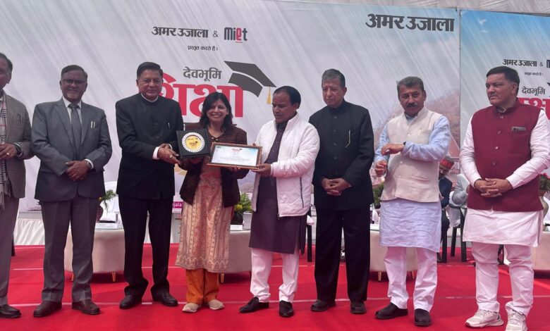 नैनीताल l कुमाऊं विश्वविद्यालय के रसायन विज्ञान के प्रोफेसर गीता तिवारी तथा वनस्पति विज्ञान विभाग के विभागाध्यक्ष प्रॉफ ललित तिवारी को देव भूमि उत्कृष्टता सम्मान 2026 से शिक्षा मंत्री डॉ धन सिंह रावत द्वारा सम्मानित किया गया है । एम आई ई टी तथा अमर उजाला के इस पुरस्कार को शिक्षा के क्षेत्र में उल्लेखनीय कार्य हेतु यह सम्मान दिया गया है । प्रॉफ गीता तिवारी के 110 उच्च कोटि के रिसर्च पेपर पब्लिश हो चुके है तथा 8 शोध छात्र पी एच डी कर चुके है । डॉ ललित तिवारी निदेशक विजिटिंग प्रोफेसर ,पूर्व निदेशक शोध के साथ विभागाध्यक्ष वनस्पति विज्ञान है उनके 210 शोध पत्र प्रकाशित हो चुके है तथा 47 विद्यार्थी उनके निर्देशन में शोध कर चुके है तथा डॉ तिवारी को उत्तराखंड रत्न सहित कई पुरस्कार मिल चुके है । उस अवसर पर कुलपति कुमाऊं विश्वविद्यालय प्रॉफ दिवान सिंह रावत ,कुलपति। उत्तराखंड मुक्त विश्वविद्यालय की कुलपति प्रॉफ नवीन चंद्र लोहनी , प्रॉफ बी एस बिष्ट ,दर्जा राज्य मंत्री डॉ अनिल कपूर , अमर उजाला तारा गुरुरानी , हल्द्वानी नगरपालिका के चेयरमैन गजराज बिष्ट सहित अन्य लोग उपस्थित रहे।