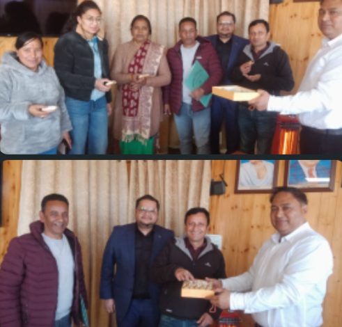 स्वास्थ्य सचिव उत्तराखंड , डॉ आर राजेश कुमार को राष्ट्रीय सम्मान प्राप्त होने पर कार्यालय मुख्य चिकित्सा अधिकारी नैनीताल में डॉक्टर एच सी पंत मुख्य चिकित्सा अधिकारी नैनीताल द्वारा मिठाई वितरित कर हर्ष व्यक्त किया गया वह शुभकामनाएं दी गई ।