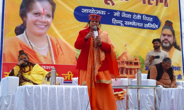 नैनीताल: मां नयना देवी विरासत हिन्दू सम्मेलन समिति द्वारा विराट हिन्दू सम्मेलन शुक्रवार को मल्लीताल फील्ड में आयोजित किया गया। इस मौके पर विश्व हिंदू परिषद की केंद्रीय मार्गदर्शक मंडल की सदस्य साध्वी प्राची ने कहा कि हिंदुओं को गर्व होना चाहिए कि राष्ट्रीय स्वयंसेवक संघ है जिससे हम सभी सुरक्षित हैं। उन्होंने चेतावनी दी की यदि कोई बच्ची लव जिहाद में जाती है तो पूरा परिवार प्रभावित होता है। उन्होंने जिहाद और भिक्षा जिहाद के बढ़ते मामलों पर भी चिंता व्यक्त की उन्होंने कहा कि बच्चों को सरस्वती शिशु मंदिर में पढ़ाने और राष्ट्रीय स्वयं सेवक संघ की शाखों में भेजने का आवन लोगों से किया जिससे बच्चे संस्कारवान बन सके । उन्होंने हिंदुओं से अपील की कि वह अपनी बेटियों को लव जिहाद से बचाए, क्योंकि वे जिहादीयों के बहकावे में आ जाते हैं । साध्वी ने कहा की हिंदुओं से एकजुट होने की अपील की l आचार्य महामंडलेश्वर चिदानंद ने कहा कि भवाली मैं नाबालिक बावली में जी नाबालिक के साथ दुष्कर्म हुआ है मैंने उसे आश्वासन दिया है कि उसके बच्चे को जन्म लेते ही वह अपने आश्रम ले जाएंगे और उसे अच्छी परवरिश देकर उसका विवाह वह खुद रचाएंगे l साध्वी के यहां पहुंचने पर हिंदू समाज र्के लोगों ने उनका जोरदार स्वागत किया l इस अवसर पर विधायक सरिता आर्या बिमल अधिकारी प्रकाश आर्य हम आर्य नितिन कार्लो अरविंद पडियार भूपेंद्र बिष्ट संतोष कुमार पंकज बरगली आयुष भंडारी विकी राठोर तारा राणा शांति मेहरा दर्जन ऑन लोग मौजूद थे l कार्यक्रम का संचालन प्रगति जैन ने किया l