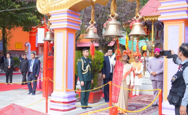 नैनीताल । राष्ट्रपति श्रीमती द्रौपदी मुर्मू ने अपने नैनीताल प्रवास के दौरान आज प्रातः शक्तिपीठ श्री मां नयना देवी मंदिर में पहुंचकर मां नयना देवी की पूजा-अर्चना की तथा राष्ट्र की सुख, शांति और खुशहाली की कामना की। मंदिर आगमन पर मंदिर समिति के सदस्यों ने माननीय राष्ट्रपति श्रीमती मुर्मू का पुष्पगुच्छ भेंट कर स्वागत एवं अभिनंदन किया। इस दौरान राज्यपाल लेफ्टिनेंट जनरल(से.नि.) गुरमीत सिंह भी मौजूद रहे।