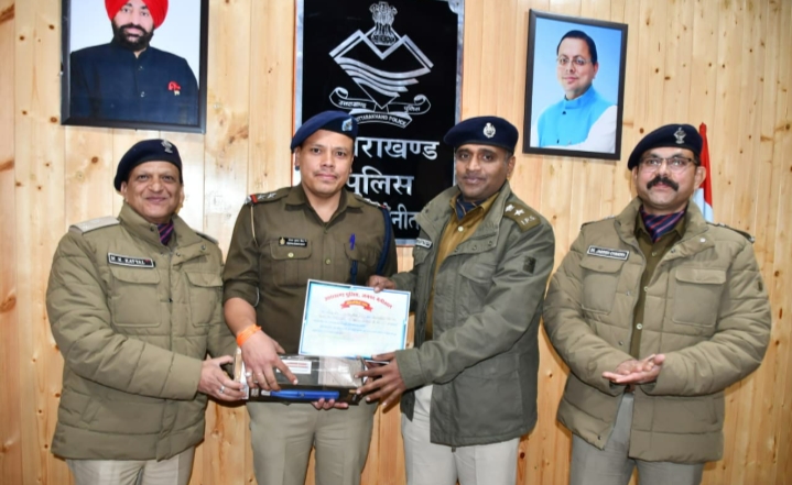 नैनीताल। नैनीताल जिले में बेहतर पुलिसिंग करने में उत्कृष्ट योगदान देने वाले 25 कार्मिकों को एसएसपी डॉ. मंजूनाथ टीसी ने प्रशस्ति पत्र देकर सम्मानित किया गया। सम्मानित होने वालों में प्रभारी निरीक्षक भवाली प्रकाश मेहरा, एसओ तल्लीताल मनोज नयाल, एसएसआई कोतवाली मल्लीताल दीपक बिष्ट, ज्योलीकोट चौकी इंचार्ज श्याम सिंह बोरा, एसआई रविन्द्र राणा थाना काठगोदाम, एसआई सुनील धानिक चौकी प्रभारी पीरूमदारा, एसआई सुनिता कुंवर प्रभारी महिला हैल्पलाईन, एएसआई यातायात प्रकाश सिंह नगरकोटी यातायात सैल हल्द्वानी, एएसआई सुनील कुमार थाना तल्लीताल, हेड कांस्टेबल तालिब हुसैन थाना रामनगर, प्रेम नेगी थाना भीमताल, मंजीत सिंह थाना चोरगलिया, गणेश राम पुलिस लाईन नैनीताल, कांस्टेबल योगेश कुमार थाना काठगोदाम, भूपेन्द्र सिंह जेष्ठा एसओजी, संतोष बिष्ट एसओजी, राजेन्द्र जोशी चौकी भुजियाघाट, दीपक जोशी चौकी भुजियाघाट, धर्मेन्द्र साहनी चौकी ज्योलिकोट, नरेन्द्र धामी साईबर सैल, बलवंत सिहं थाना मुखानी, सुरेन्द्र नैनवाल थाना बनभूलपुरा, विरेन्द्र गोले थाना भीमताल, विनोद कुमार सूचना सैल हल्द्वानी, सुनील टम्टा पुलिस लाइन सामिल हैं।