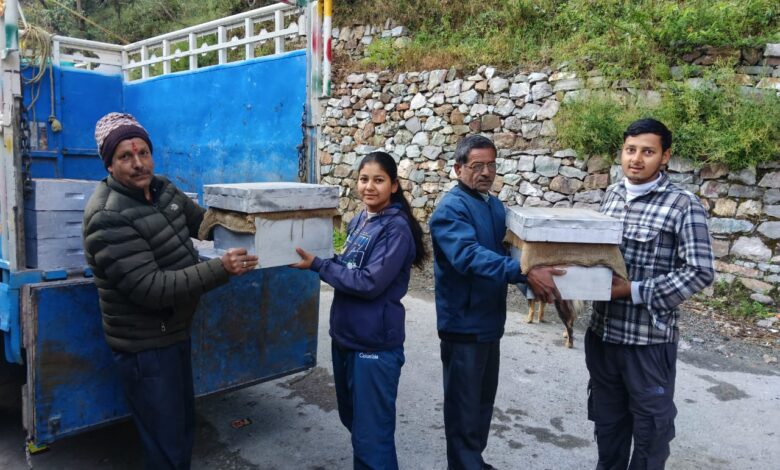 बेतालघाट में सोसाइटी फॉर उत्तराखंड डेवलपमेंट एंड हिमालयन एक्शन के सहयोग से ग्रामीणों को मधुमक्खी पालन के लिए किया जागरूक