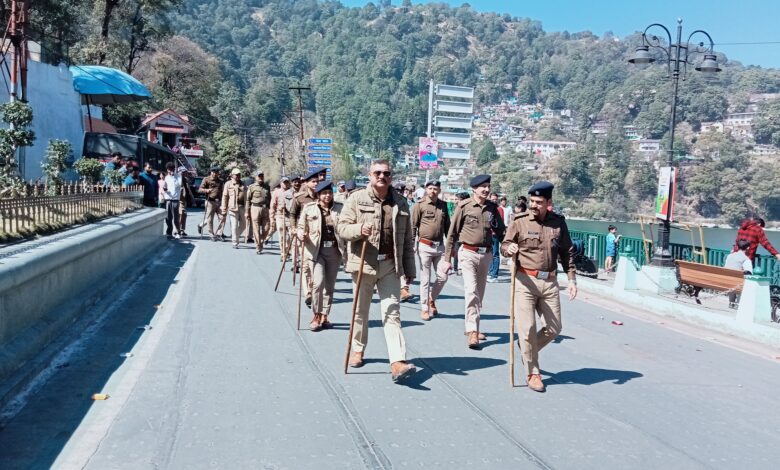 होली के पर्व को देखते हुए तल्लीताल पुलिस ने नगर में मार्च पास्ट निकला