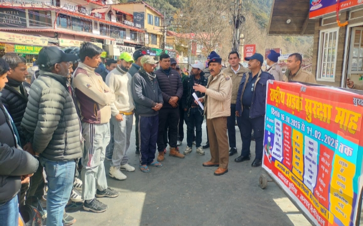 नीताल। सड़क सुरक्षा माह के अंतर्गत नैनीताल यातायात पुलिस की ओर से जागरूकता अभियान चलाया गया। इस दौरान टैक्सी चालकों, नाव चालकों, टूरिस्ट गाइडों, रिक्शा चालकों के साथ-साथ स्थानीय नागरिकों को यातायात नियमों और सड़क सुरक्षा के प्रति जागरूक किया गया। अभियान के दौरान टीएसआई हरीश फर्त्याल ने लोगों को सुरक्षित वाहन संचालन, हेलमेट और सीट बेल्ट के उपयोग, ओवरस्पीडिंग से बचाव, नशे में वाहन न चलाने तथा पर्यटकों के साथ शालीन व्यवहार रखने के बारे में विस्तार से जानकारी दी। उन्होंने कहा कि नैनीताल एक पर्यटन स्थल है, ऐसे में यहां यातायात नियमों का पालन करना न केवल अपनी बल्कि पर्यटकों की सुरक्षा के लिए भी बेहद जरूरी है। टीएसआई फर्त्याल ने कहा कि सड़क दुर्घटनाओं में कमी लाने के लिए पुलिस के साथ-साथ आम जनता की सहभागिता आवश्यक है। अगर हर व्यक्ति यातायात नियमों का पालन करे तो दुर्घटनाओं को काफी हद तक रोका जा सकता है। उन्होंने चालकों से अपील की कि वे वाहन चलाते समय पूरी सतर्कता बरतें और दूसरों के लिए भी उदाहरण बनें। इस दौरान विनोद जोशी, महेश कुमार, असलम, शाहिद, उमेश चंद्र सहित कई स्थानीय लोग और चालक मौजूद रहे।