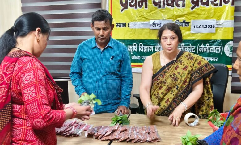 भीमताला कृषि विज्ञान केंद्र (केवीके), ज्योलीकोट द्वारा भीमताल ब्लॉक के विभिन्न ग्राम सभाओं में महिला किसानों के लिए एक विशेष प्रशिक्षण शिविर का आयोजन किया गया। केंद्र के तत्वावधान में आयोजित इस कार्यक्रम का मुख्य उद्देश्य ‘पोषण वाटिका के माध्यम से ग्रामीण परिवारों को आत्मनिर्भर बनाना और उन्हें साल भर रसायन मुक्त, ताजी सब्जियां उपलब्ध कराना है।प्रशिक्षण के दौरान दागड़, गेठिया, बेलुवाखान, गाँजा और भलयूटी गाँवों की महिलाओं को खरीफ के मौसम में सब्जियों के सफल उत्पादन की बारीकियां सिखाई गईं।