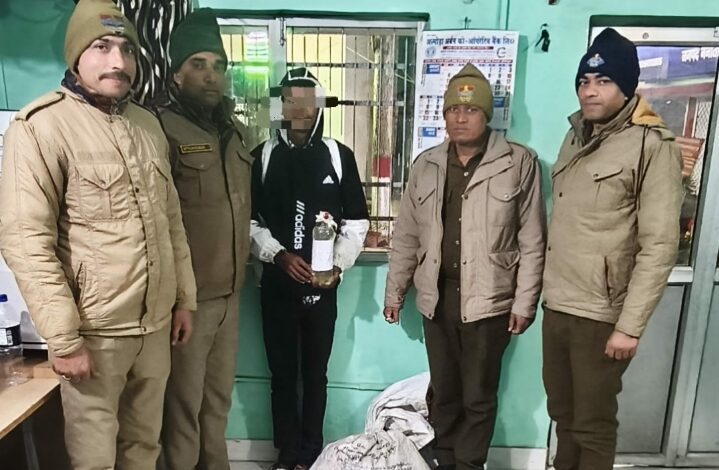 नैनीताल l वरिष्ठ पुलिस अधीक्षक नैनीताल डॉ0 मंजुनाथ टी0सी0 द्वारा जनपद में अवैध मादक पदार्थों की बिक्री /तस्करी पर रोकथाम लगाए जाने हेतु सभी प्रभारियों को अभियान चलाकर नशा तस्करों के विरुद्ध के निर्देश दिए गए है। पुलिस अधीक्षक हल्द्वानी मनोज कुमार कत्याल के मार्गदर्शन क्षेत्राधिकारी रामनगर सुमित पांडे के पर्यवेक्षण तथा प्रभारी निरीक्षक कालाढूंगी अरुण कुमार सैनी के नेतृत्व में पुलिस टीम द्वारा 13 फरवरी को चैकिंग के दौरान निहाल नदी विदरामपुर चकलुवा क्षेत्र से एक व्यक्ति को 57 पाउच अवैध कच्ची शराब के साथ गिरफ्तार किया गया।