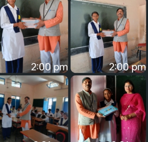 प्रथम स्थान प्राप्त करने पर रागिनी को पूरे वर्ष भर हेतु कॉपियां भेंट कर सम्मानित किया।