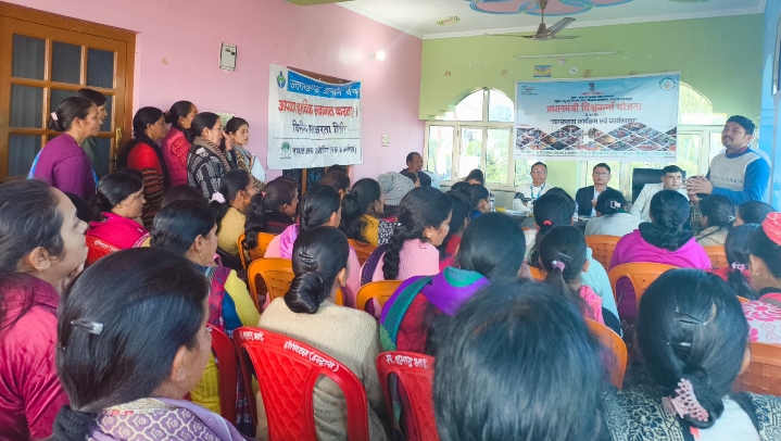 हल्द्वानी l सूक्ष्म लघु एवं मध्यम उद्यम मंत्रालय भारत सरकार के हल्द्वानी स्थित कार्यालय द्वारा आज गौलापार के ग्राम देवपुर पोखरिया में एक रोजगार कार्यशाला का आयोजन किया गया। कार्यक्रम को एमएसएमई के सहायक निदेशक एस सी कांडपाल एवं अमित मोहन द्वारा संबोधित करते हुए प्रधानमंत्री विश्वकर्मा योजनाओं सहित अनेक जन कल्याणकारी योजनाओं की जानकारी प्रदान की गई। उत्तराखंड ग्रामीण बैंक के हल्द्वानी स्थित क्षेत्रीय कार्यालय से ऋण विभाग के प्रबंधक दीपक पांडे द्वारा एम एस एम ई योजनाओं सहित बैंक की कृषि, पशुपालन, मत्स्य पालन, बागवानी सहित अनेक योजनाओं की जानकारी प्रदान की गई। वित्तीय जागरूकता सलाहकार बी डी नैनवाल द्वारा वर्तमान समय में मोबाइल एवं डिजिटल माध्यम से बैंकिंग सेवाओं से प्राप्त सुगमता के बारे में अवगत कराते हुए इनके इस्तेमाल पर सावधानियां की भी जानकारी दी गई। जिला उद्योग केंद्र की प्रबंधक सीमा बिष्ट एवं कौशल विकास एवं उद्यमिता विकास मंत्रालय से आए गोपाल प्रसाद द्वारा भी रोजगार संबंधी योजनाओं की जानकारी दी गई। सभा को क्षेत्र पंचायत सदस्य प्रकाश बिष्ट द्वारा भी संबोधित कर अधिक से अधिक ग्रामीणों को बैंक से जुड़ते हुए ऋण एवं वित्तीय सेवाओं का लाभ लेने की सलाह दी गई। उक्त कार्यशाला में गौलापार एवं चोरगलिया से लगभग 70 महिलाओं ने भाग लिया।