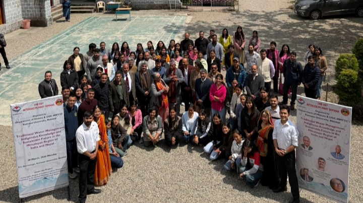 नैनीताल l कुमाऊँ विश्वविद्यालय के इतिहास विभाग तथा यूजीसी एमएमटीसी के संयुक्त तत्वावधान में मुख्यमंत्री “पारंपरिक जल प्रबंधन, स्वदेशी ज्ञान और सतत भविष्य” विषय पर एक दिवसीय अंतर्विषयी संगोष्ठी का सफल आयोजन किया गया। भारत और नेपाल के हिमालयी क्षेत्र को केंद्र में रखकर आयोजित इस संगोष्ठी में देश-विदेश के प्रख्यात विद्वानों, शोधार्थियों एवं विद्यार्थियों ने भाग लिया तथा हिमालयी संदर्भ में जल, संस्कृति, पारिस्थितिकी और सतत विकास के महत्वपूर्ण अंतर्संबंधों पर गहन विचार-विमर्श किया।