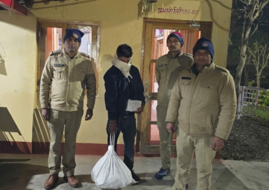 नैनीताल l टीसी डॉ0 मंजुनाथ द्वारा प्रभारियों को अवैध नशा तस्करों के विरुद्ध कड़ी कार्यवाही के निर्देश के चलते पुलिस अधीक्षक नैनीताल डॉ0 जगदीश चन्द्र के मार्गदर्शन क्षेत्राधिकारी नैनीताल भवाली रविकांत सेमवाल के पर्यवेक्षण तथा प्रभारी निरीक्षक कोतवाली भवाली प्रकाश सिंह मेहरा के नेतृत्व में पुलिस टीम द्वारा चेकिंग के दौरान पहाड़ी रसोई रामगढ़ मुक्तेश्वर रोड से अभियुक्त हिमांशु भट्ट पुत्र श ईश्वरी दत्त भट्ट निवासी ग्राम हरतोला थाना भवाली जनपद नैनीताल उम्र 25 वर्ष को 52 पव्वे अवैध मसालेदार देशी शराब के साथ गिरफ्तार किया गया गया हैं। अभियुक्त के विरुद्ध थाना कोतवाली भवाली में धारा 60 ई एक्स एक्ट के अंतर्गत अभियोग पंजीकृत कर आवश्यक कार्यवाही की गई। इस अभियान में पुलिस उ0नि0गुलाब सिंह कम्बोज शामिल रहे।