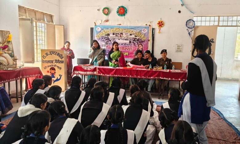 डॉ० जगदीश चंद्र एसपी नैनीताल* के पर्यवेक्षण में बेतालघाट पुलिस द्वारा राजकीय बालिका इंटर कॉलेज बेतालघाट की छात्राओं को महिला अपराधों एवं साइबर सुरक्षा के संबंध में जागरूक किया गया।पुलिस की पाठशाला में छात्राओं को महिला अपराधों की रोकथाम के उपाय बताते हुए डायल 112 हेल्पलाइन की उपयोगिता के बारे में जानकारी दी गई। वर्तमान समय में साइबर अपराधों में हो रही वृद्धि के कारण सतर्क रहने, किसी भी अंजान लिंक पर क्लिक न करने व अपनी व्यक्तिगत जानकारी जैसे आधार नम्बर, निजी फोटोग्राफ, ओ0टी0पी0 आदि साझा न करने हेतु जागरुक किया गया। साईबर फ़्रॉड हो जाने पर तत्काल 1930 पर शिकायत दर्ज करने के बारे में अवगत कराया गया। साथ ही उपरोक्त विषयों की महत्वपूर्ण जानकारी को अपने मित्रों और परिजनों से सांझा करने की अपील की गई।