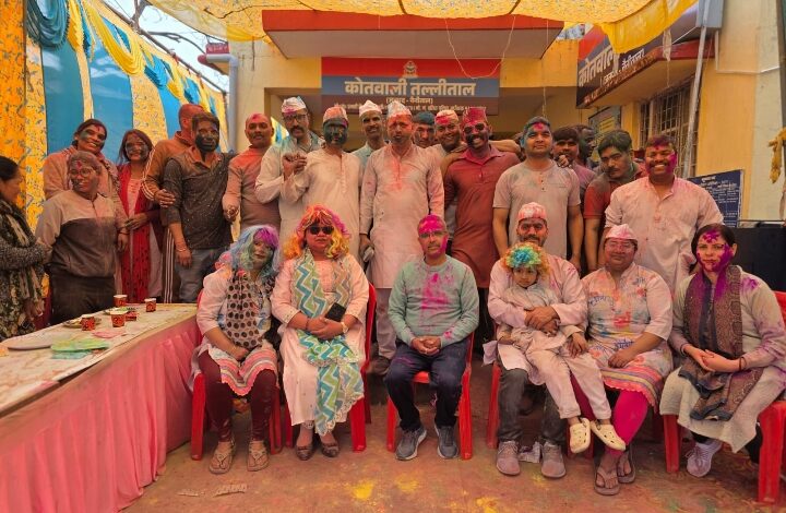 पुलिस कर्मी सदैव त्योहारों पर जनता की सुरक्षा में तैनात रहते हैं। हमारा उद्देश्य अपने इस बड़े पुलिस परिवार के साथ खुशियों के कुछ पल साझा करना है ताकि उनमें नई ऊर्जा का संचार हो सके। एसएसपी नैनीताल की अगुवाई में नैनीताल पुलिस ने ड्यूटी की थकान मिटाकर जवान जमकर थिरके। सुरक्षा की कठिन जिम्मेदारियों और ड्यूटी की व्यस्तताओं के बीच, नैनीताल पुलिस के अधिकारियों और जवानों ने आपसी सौहार्द के साथ होली मनाई। डॉ० मंजूनाथ टी०सी० भी इस मौके पर मौजूद रहे। उत्सव की शुरुआत एसएसपी आवास पर महिला पुलिस कर्मियों और पुलिस परिवार की महिलाओं द्वारा मंगल गीतों और सामूहिक नृत्य के साथ हुई। उच्चाधिकारियों की मौजूदगी ने जवानों का मनोबल बढ़ाया और उत्सव के उत्साह को दोगुना कर दिया। एसएसपी नैनीताल ने स्वयं कमान संभालते हुए पुलिस टोली के साथ जिलाधिकारी, आईजी और कमिश्नर आवास पहुंचकर आला अधिकारियों को रंग लगाकर पर्व की शुभकामनाएं दीं। वरिष्ठ अधिकारियों ने प्रत्येक जवान को गुलाल लगाकर उनके उज्ज्वल भविष्य और उत्तम स्वास्थ्य की कामना की। कार्यक्रम के दौरान पुलिस परिवार ने मिष्ठान, विभिन्न प्रकार के व्यंजनों का लुफ्त उठाया। तल्लीताल व मल्लीताल कोतवाली में पारंपरिक होली गीतों पर पुलिसकर्मियों का उत्साहपूर्ण नृत्य किया। उल्लास के बीच भी पुलिस बल का अनुशासन और मर्यादा मिसाल बनी रही। ऊंच-नीच और पद का भेद मिटाकर सभी अधिकारी व जवान एक-दूसरे को रंग लगाया।