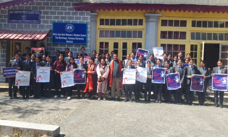 नैनीताल। डीएसबी परिसर के माता जिया रानी महिला अध्ययन केंद्र, में बुधवार को को प्रिवेंशन ऑफ़ सेक्सुअल हर्रासमेंट ऑफ़ वर्किंग वीमेन एंड स्टूडेंट विषय पर एकदिवसीय जागरूकता दिवस मनाया गया। जिसमें छात्राओं को। सेक्सुअल हरस्मेंट के कानूनी प्रावधान, विशाखा गाइड की जानकारी दी l