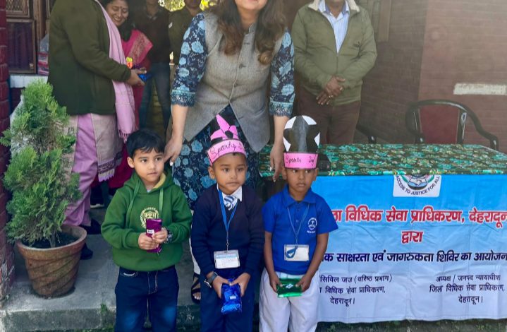 प्राधिकरण नैनीताल एवं जिला न्यायाधीश/अध्यक्ष जिला विधिक सेवा प्राधिकरण, देहरादून प्रेम सिंह खिमाल के निर्देशानुसार 14 नवंबर 2025 को बाल दिवस के अवसर पर सचिव जिला विधिक सेवा प्राधिकरण देहरादून श्रीमती सीमा डुँगराकोटी द्वारा फरगर जूनियर हाई स्कूल, राजपुर रोड, देहरादून के कार्यक्रम में प्रतिभाग किया गया। स्कूल के बच्चों को सचिव द्वारा बाल दिवस के महत्व को बताया गया और यह बताया गया कि बाल दिवस भारत के पहले प्रधानमंत्री जवाहरलाल नेहरू के जन्मदिन के अवसर पर मनाया जाता है। यह दिन हमें बच्चों के अधिकारों उनकी शिक्षा के महत्व के बारे में जागरूक करता है तथा यह दिन बच्चों के प्रति जिम्मेदारियां को निभाने के लिए भी हमें प्रेरित करता है। साथ ही बच्चों को उनके विधिक अधिकार, पोक्सो एक्ट, गुड टच बेड टच आदि महत्वपूर्ण विषयों की विस्तारपूर्वक जानकारी दी। स्कूल के बच्चों द्वारा स्कूल में आयोजित विभिन्न प्रतियोगिताओ में प्रतिभाग किया गया, जिसमें विजेता बच्चों को स्कूल द्वारा तथा जिला विधिक सेवा प्राधिकरण देहरादून द्वारा सम्मानित किया गया। साथ ही सचिव महोदया द्वारा बच्चों के साथ खेल में प्रतिभाग किया गया और बच्चों को पुरस्कार भी वितरित किए गए और तीन छोटे बच्चों को उनकी सुंदर कविता के लिए स्टेशनरी किट दी गई। साथ ही विद्यालय को मेडिकल किट भी वितरित किया गया । इस अवसर पर जिला विधिक सेवा प्राधिकरण के पराविधिक कार्यकर्ता उमेश्वर सिंह रावत द्वारा उक्त कैंप का आयोजन किया गया। स्कूल की प्रधानाचार्य श्रीमती सबीना दास, शिक्षिका गीता मिश्रा, उर्वशी विलियम, स्वाति भारद्वाज एवं 80 बच्चों ने प्रतिभाग किया।