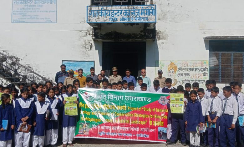 नैनीताल l वन प्रभाग नैनीताल के मनोरा रेंज अंतर्गत राजकीय इंटर कॉलेज मंगोली में ग्रीन इंडिया मिशन परियोजना अंतर्गत प्रोजेक्ट ऑफ बेहेबियल इकोलॉजी एंड प्लानिंग ऑफ कन्वर्सेशन स्टडीज ऑफ किंग कोबरा इन नैनीताल लैंडस्केप कार्यक्रम का आयोजन जे. आर. एफ. ज्योति नगरकोटी तथा फील्ड अस्सिटेंट कृष्ण कुमार द्वारा किया गया। कार्यक्रम में उत्तराखंड में पाए जाने वाले विभिन्न प्रकार के सांपों के बारे में छात्र-छात्राओं तथा शिक्षको को जानकारी दी गई तथा किंग कोबरा के वास स्थल, व्यवहार तथा किंग कोबरा द्वारा बनाए जाने वाले घोंसले के बारे में जानकारी दी गई। इसके अलावा सर्पदंश से सुरक्षा एवं बचाव के बारे में विस्तार से बताया गया तथा जागरूक किया गया। कार्यक्रम में राजकीय इंटर कॉलेज मंगोली के प्रधानाचार्य, अध्यापक, समस्त स्टाफ एवं वन दरोगा रणजीत सिंह थापा, वन बीट अधिकारी शिव सिंह, बीट वाचर आनंद सिंह नेगी शामिल रहे।
