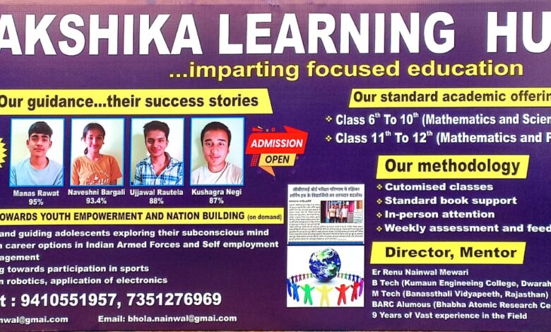 नैनीताल । गत दिवस सीबीएसई 10वीं के बोर्ड परीक्षा परिणामों में रक्षिका लर्निंग हब के विद्यार्थियों ने सफलता के परचम लहराये हैं। जहां कृतिका तड़ागी 97% कनक दुर्गापाल 94% नमन भौर्याल 92% के साथ-साथ सभी विद्यार्थियों ने सफलता के नये आयाम स्थापित किये है। यहां बताते चलें के रक्षिका लर्निंग हब की संचालक ई0 रेनू नैनवाल मेवाड़ी ने वनस्थली विद्यापीठ से मास्टर आफ टेक्नोलॉजी की डिग्री प्राप्त की है तथा देश के प्रतिष्ठित संस्थान भाभा एटॉमिक रिसर्च सेंटर में एक साल की इंटर्नशिप भी प्राप्त की है। यहां यह बताना भी प्रासंगिक होगा की ई0 रेनू हल्द्वानी के ख्याति प्राप्त, प्रतिष्ठित हरगोविंद सुयाल सरस्वती विद्या मंदिर इंटर कॉलेज, की प्रथम बैच की स्टूडेंट रही है। इंजीनियर रेनू ने यह भी साबित कर दिया की उच्च शिक्षा प्राप्त करने के बाद नौकरी की तरफ दौड़ की होड़ से बचने का प्रयास किया जाना चाहिए। स्वरोजगार से भी स्वावलंबन तथा आत्मनिर्भर बनने का सपना भी पूरा किया जा सकता है। वर्तमान में इंजीनियर रेणु की कोचिंग में कक्षा 6 से 12 तक के बच्चों को विज्ञान गणित और भौतिक विज्ञान विषय स्वयं इनके द्वारा पढ़ाए जाते हैं। इसके अतिरिक्त आर्टिफिशियल इंटेलिजेंस रोबोटिक और ड्रोन आदि पर भी मांग के अनुसार प्रशिक्षण दिया जाता है।