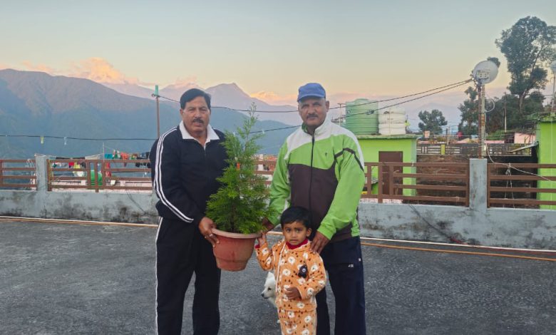 नैनीताल l राज्य आंदोलनकारी दिनेश गुरुरानी द्वारा राज्य में किया जा रहा अनूठा पौधा रोपण अभियान 461वे दिन भी जारी रहा। अभियान के 461वे दिन डीडीहाट में सेवानिवृत्त सूबेदार मोहन सिंह कन्याल ने पौधारोपण अभियन से जुड़ते हुए अपने पौत्र राजा कन्याल के साथ एक पौधा धरती मां के नाम के तहत पौधा रोपण किया। मोहन सिंह कन्याल ने कहा कि प्रकृति से उनका पुराना लगाव है और प्रकृति संरक्षण के लिए कार्य करते रहते हैं। इस मुहिम से जुड़ते हुए उन्होंने सभी का आवाहन किया कि वह भी पौधारोपण अभियान से जुड़कर पौधारोपण करें। दिनेश गुरु रानी ने कहा कि उनका पौधा रोपण अभियान जारी रहेगा। नित्य की भांति उनके द्वारा अपने पिता स्वर्गीय तारादत्त गुरु रानी की स्मृति में स्मृति पौध लगाया गया।