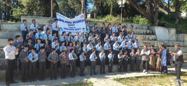 पौधा रोपण अभियान के 458 वें दिन।।। विद्यालयों को पौधारोपण अभियान।।। से जोड़ने के क्रम में अभिलाषा एकेडमी जूनियर हाई स्कूल डीडीहाट के 150 छात्र-छात्राओं को पौधारोपण अभियान से जोड़ा गया। दिनेश गुरु रानी ने छात्र-छात्राओं को हिमालय बचाओ अभियान के तहत शपथ दिलाई। छात्र-छात्राओं ने परिसर में विभिन्न प्रजातिके पौधों का रोपण किया । छात्र-छात्राओं ने यह कहा कि वह भी पौधारोपण अभियान से प्रेरित होकर अपने घर पर भी पौधारोपण करेंगे। छात्र-छात्राओं ने स्वच्छता कार्यक्रम के तहत सफाई अभियान भी चलाया ।विद्यालय में अभिलाषा एकेडमी के स्टाफ द्वारा प्रबंधक चंचल सिंह नितवाल व प्रधानाचार्य डॉक्टर अनिता जोशी के नेतृत्व में दिनेश गुरुरानी को पर्यावरण के क्षेत्र में किये जा रहे कार्य के लिए शाल उडाकर व स्मृति चिन्ह देकर सम्मानित किया गया ।।