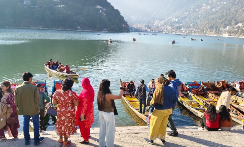 नैनीताल। नगर में होली पर्व पर पर्यटकों की संख्या में इजाफा हुआ है। मंगलवार को नगर के अनेक पर्यटक स्थलों में पर्यटकों की भीड़ लगी हुई थी l नगर के अनेक होटल में इस बार पर्यटक होली खेलेंगे जिसके लिए होटल में विशेष तैयारी भी की जा रही है इसके अलावा पर्यटक नगर के माल रोड समेत अनेक जगह में होली खेलेंगे l होली के अवकाश के चलते, मंगलवार को भी नगर में पर्यटक अन्य दिनों के मुकाबले अधिक पहुंचे हुए थे। पर्यटकों ने नैनी झील में नौकायन के साथ ही यहां के बाजार से खरीदारी भी की l पर्यटकों की संख्या बढ़ने से नगर के पर्यटन से जुड़े कारोबारी भी व्यस्त दिखाई दिए मंगलवार की शाम तक यहां पर्यटक लगातार आ रहे थे l