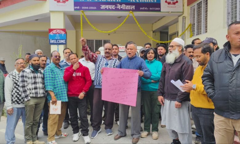 नैनीताल l नगर के व्यापारियों ने कोतवाली में प्रदर्शन किया l व्यापारियों ने कहा कि पुलिस द्वारा उन्हें परेशान किया जा रहा है उन्होंने कहा कि पुलिस रोज 11 बजे दुकानों को बंद कर रही है जिससे उनके व्यवसाय में घाटा हो रहा है उन्होंने कहा कि ऐसा कोई आर्डर नहीं है की दुकानों को 11 तक ही खोला जाए जबकि उनके पास शान का पात्र है कि पर्यटक स्थलों में दुकान 24 घंटे खुले रहेंगे उन्होंने कहा कि 11 बजे बाद दुकान है बंद होने से व्यापारियों को परेशानी हो ही रही है साथ में यहां आने वाले सैलानियों को भी काफी दिक्कत हो रही है उन्होंने कहा कि जिस व्यापारी कतई बर्दाश्त नहीं करेंगे उन्होंने कहा मंगलवार को भी व्यापारियों द्वारा कोतवाली में प्रदर्शन किया जाएगा उन्होंने कहा कि व्यापारियों को पुलिस द्वारा उत्पीड़न किया जा रहा है जिसे कतई बर्दाश्त नहीं किया जाएगा और साथ ही टैक्सी चालको व होटल के गाइडों से भी पुलिस द्वारा उनका उत्पीड़न किया जा रहा है तथा गालियां दी जा रही हैं उन्होंने कहा कि यदि पुलिस की इसी तरह मनमानी जारी रहेगी तो बाजार बंद भी करने में व्यापारी पीछे नहीं हटेंगे इस मौके पर व्यापार मंडल के अध्यक्ष किशन सिंह नेगी रईस खान रुचिर शाह अतुल शाह भारती सोनू बिष्ट सहित दर्जनों व्यापारी मौजूद थे l