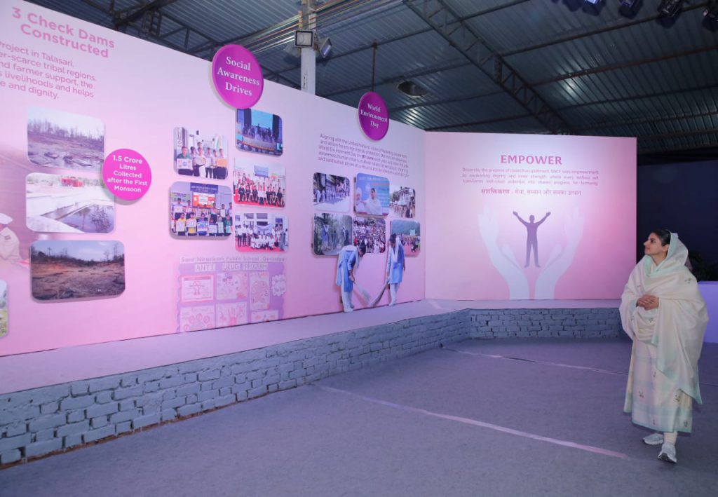 संत समागम में आधुनिक तकनीक एवं लाइट्स आदि का इस्तेमाल करते हुए अत्यंत आकर्षक बनाई गई निरंकारी प्रदर्शनी श्रद्धालुओं के आकर्षण का मुख्य केन्द्र बनीं हुई है। श्रद्धालुओं की सुविधा के लिए निरंकारी प्रदर्शनी में मुख्य प्रदर्शनी, बाल प्रदर्शनी एवं संत निरंकारी चैरिटेबल फाउंडेशन की प्रदर्शनी-इस तरह तीन भाग बनाये गए हैं। मुख्य प्रदर्शनी में मिशन का इतिहास, सतगुरु माता जी एवं निरंकारी राजपिता की मानव कल्याण यात्राएं इत्यादि का ब्यौरा प्रस्तुत किया है जबकि तीन विभिन्न मॉडलों द्वारा संत समागम के मुख्य विषय ‘आत्ममंथन’ पर प्रकाश डाला गया है जिससे श्रद्धालुओं को प्रेरणादायी शिक्षा प्राप्त हो रही है। बच्चों के लिए शिक्षाप्रद बाल प्रदर्शनी वर्तमान समय में बच्चों के बारे में जिन समस्याओं का पूरे संसार को सामना कर पड़ रहा है उसका यथार्थ हल प्रस्तुत कर रही है जिसका बच्चों के कोमल मनों पर गहरा प्रभाव देखने को मिल रहा है। निरंकारी मिशन बच्चों को दुनियावी शिक्षा के साथ साथ आध्यात्मिक शिक्षा भी प्रदान कर रहा है। एसएनसीएफ (संत निरंकारी चैरिटेबल फाउंडेशन) प्रदर्शनी में मिशन की सामाजिक गतिविधियों एवं समाज सुधार के कार्यों को विभिन्न मॉडलों द्वारा दर्शाया गया है। एसएनसीएफ के स्वास्थ्य, सुरक्षा एवं सशक्तिकरण यह तीन मुख्य उद्दिष्ट हैं जिनको प्रयोग में लाने के लिए मिशन द्वारा देश-विदेश में विभिन्न सामाजिक गतिविधियों को आयोजित किया जाता है। सादा एवं सामूहिक विवाह जैसे कार्यक्रमों द्वारा समाज सुधार के कार्य भी मिशन द्वारा संचालित हो रहे हैं। समाज उत्थान के लिए मिशन द्वारा चलाये जा रहे विभिन्न उपक्रमों का ब्यौरा और स्वरूप इस प्रदर्शनी में दृष्टिगोचर होता है