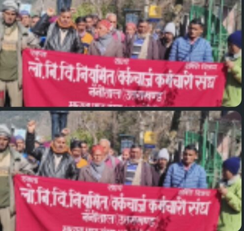 नैनीताल l लोक निर्माण विभाग के नियमित व वर्कचार्ज कर्मचारियों ने पेंशन से बाहर किए जाने वाले शासनादेश के खिलाफ सोमवार को तल्लीताल डाट गांधी चौक पर कड़ा विरोध जताया। कर्मचारियों का आरोप है कि 1980 से 2025 तक कार्यरत रहे अनेक सेवानिवृत्त कर्मियों व उनके मृतक आश्रितों को आज तक न तो नियमितीकरण मिला और न ही पेंशन व अन्य देयकों का भुगतान हुआ, जिससे वे गंभीर आर्थिक संकट में हैं।