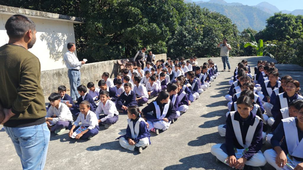 नैनीताल l केंद्रीय संचार ब्यूरो नैनीताल केंद्र के द्वारा एक पेड़ मां के नाम का कार्यक्रम राजकीय इंटर कॉलेज अमिया में किया गया ,जिसमें विभाग द्वारा एक पेड़ मां के नाम पर पौधारोपण विद्यालय के प्रभारी प्रधानाचार्य द्वारा विद्यालय परिसर में किया गया,। इस कार्यक्रम में विभाग द्वारा विभिन्न प्रतियोगिताओं का आयोजन किया गया जिसमें भाषण प्रतियोगिता, निबंध प्रतियोगिता और प्रश्नोत्तरी कार्यक्रम सम्मिलित थे, कार्यक्रम में प्रतियोगिताओं में भाषण प्रतियोगिता में करण जोशी प्रथम, नितिन द्वितीय वह अर्जुन जोशी तृतीय स्थान पर रहे वहीं निबंध प्रतियोगिताओं में निशा आर्य प्रथम, मीनाक्षी पलाडिया द्वितीय व दिव्या शर्मा तृतीय स्थान पर रही साथ ही विभाग द्वारा प्रश्नोत्तरी कार्यक्रम का आयोजन भी किया गया, विजेताओं को विभाग द्वारा पुरस्कृत किया गया, इस कार्यक्रम में विद्यालय के प्रभारी प्रधानाचार्य श्री पी एल यादव द्वारा विभाग के सफल आयोजन पर विभाग को बधाई प्रेषित की गई, कार्यक्रम में विद्यालय के संजय पांडे नवीन जोशी , योगेश पाठक, विजय लोहानी, नवल उपाध्याय, कैलाश बुलाकोठी तथा अआमजान उपस्थित रहे। कार्यक्रम प्रभारी गोपेश गोपेश बिष्ट ने बताया की विभाग द्वारा एक पेड़ मां के नाम का एक वृहद कार्यक्रम विभाग द्वारा चलाया जा रहा है, जिसमें विभिन्न क्षेत्रों में जाकर के लोगों को जागरूक किया जा रहा है। कार्यक्रम का संचालन विभाग की श्रीमती श्रद्धा गुरु रानी तिवारी द्वारा किया गया वहीं विभाग के भास्कर जोशी द्वारा विद्यालय के छात्रों को कई ज्ञानवर्धक विषयों के बारे में बताया गया, कार्यक्रम में विभाग के भूपेंद्र जडौत और दीवान सिंह शामिल रहे।