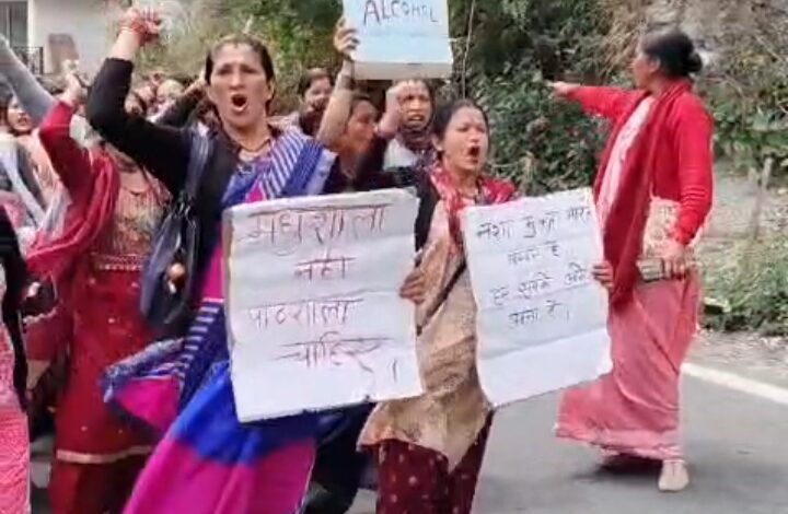 शराब की दुकान हटाने को लेकर महिलाओं ने लगाया जाम